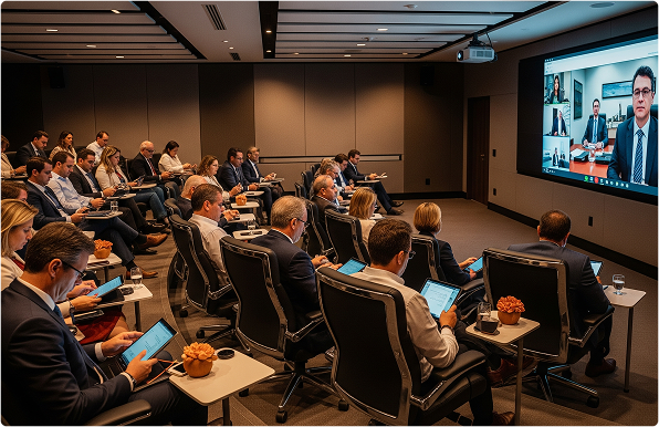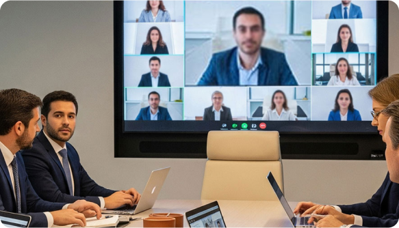 Transformamos reuniões em experiências colaborativas de alto impacto, conectando pessoas com qualidade profissional, como se estivessem no mesmo ambiente.